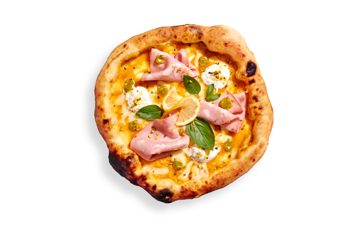 Ce fumet de pain levé que vous sentez, c'est celui de la croûte dorée si caractéristique de la pizza Napolitaine. Doucement, tranquillement, elle gonfle dans notre four, cratère ardent, avant d'être nappée d'une lave dont nous avons le secret : une sauce tomate acidulée faite de produits bruts de qualité. Issus des plus beaux terroirs italiens, accrochés sur les flancs du Vésuve ou un peu plus loin, de notre burrata à nos légumes confits, de nos dolci à nos arancini, une seule et même idée : ébranler le palais d'une explosion de saveurs.